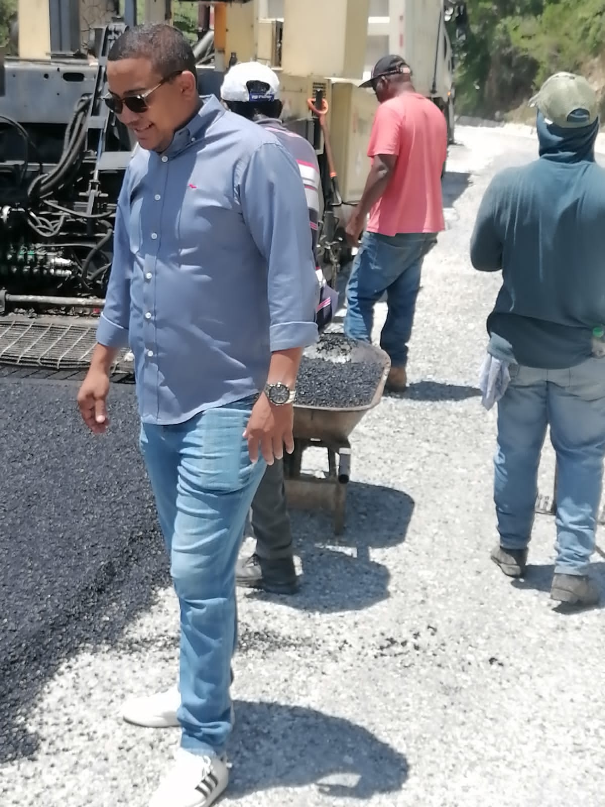 En ese orden, el gestionador principal de la obra, el Alcalde Municipal de este territorio Iván Aristides Medina Trinidad, supervisa el inició de los trabajos de Asfaltado de la mencionada carretera como se lo ha solicitado el superior Gobierno a los Ejecutivos de los Ayuntamientos locales, con el propósito de que los Municipios del país cuenten con fuertes, viables y transparentes estructuras.